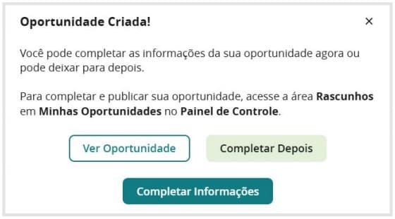 Depois de preencher todas as informações da oportunidade, basta clicar em: